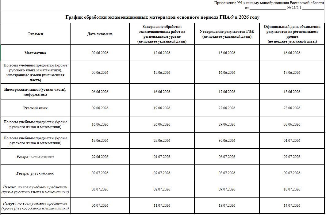 - Приказ Министерства общего и профессионального образования Ростовской области от 11.11.2024 № 788/2090 Об утверждении единого расписания и продолжительности проведения основного государственного экзамена по каждому учебному предмету, требований к использованию средств обучения и воспитания при его проведении в 2025 году" (посмотреть)